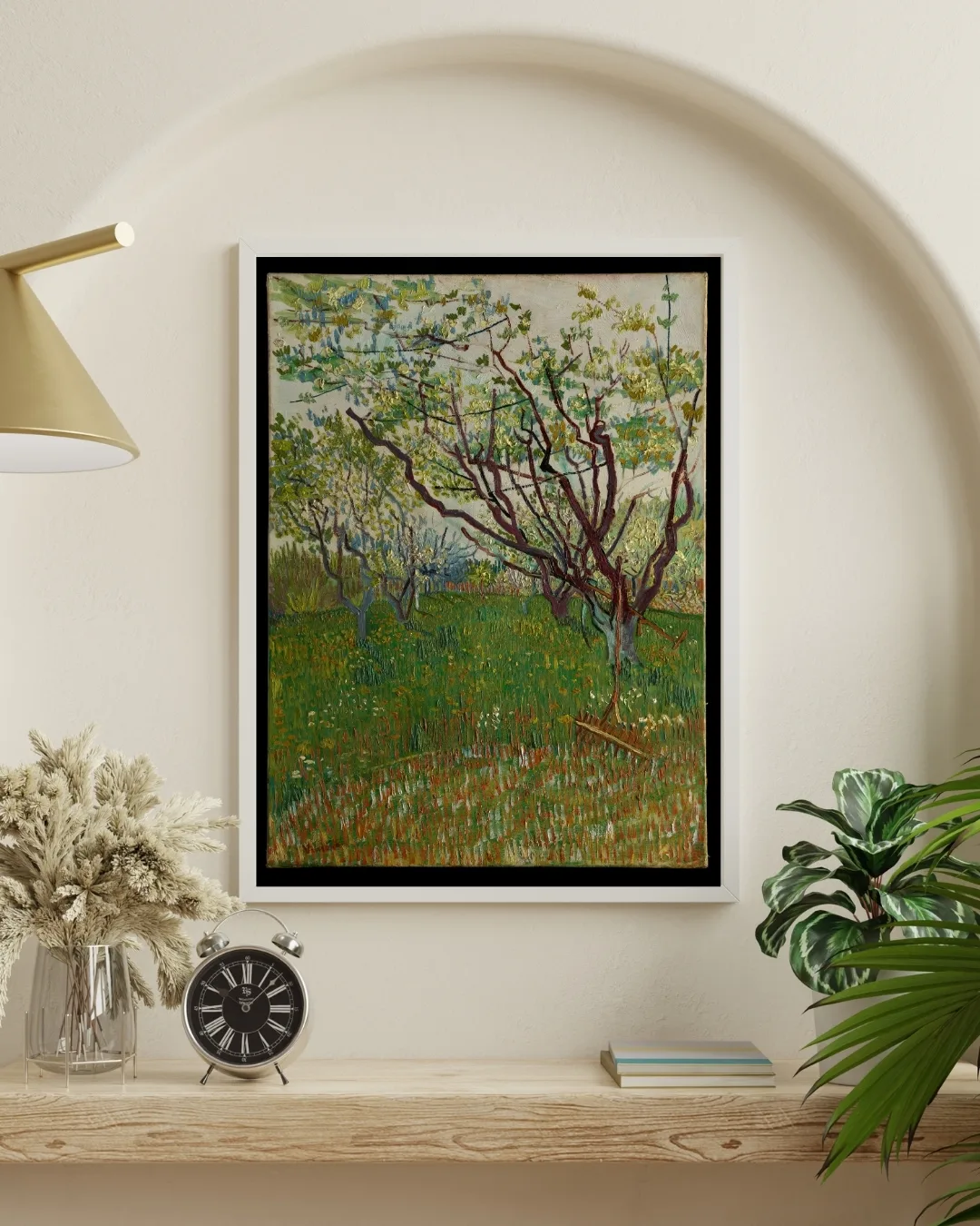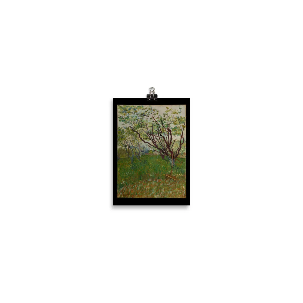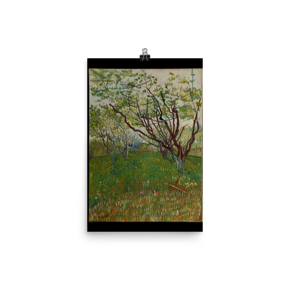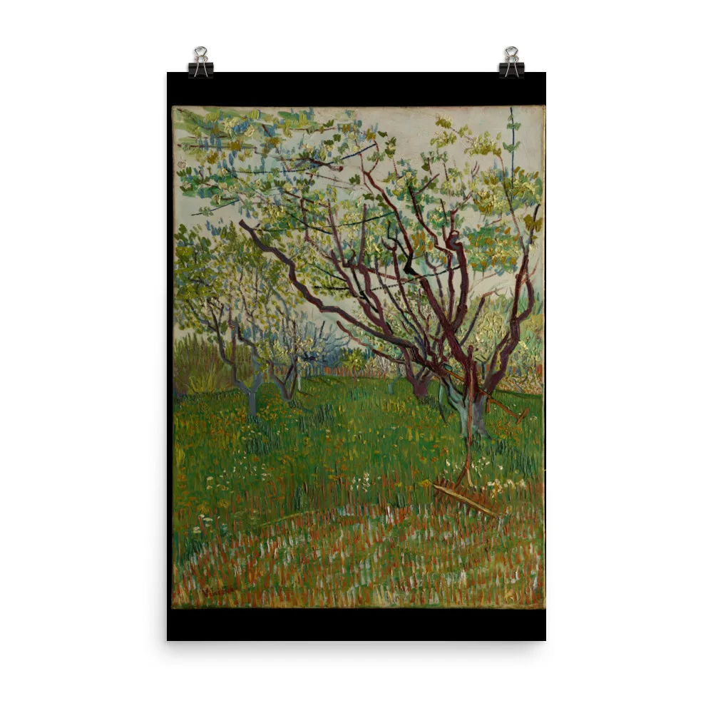 The arrival of spring in Arles in 1888 found Van Gogh “in a fury of work.” As he wrote to his brother Theo, “the trees are in blossom and I would like to do a Provençal orchard of tremendous gaiety.” Between late March and late April, the artist dedicated fourteen canvases to the subject, working in a range of sizes, formats, and styles. This composition, dominated by the angular, elongated branches of the budding trees, attests to Van Gogh’s admiration for Japanese prints. His inclusion of the scythe and rake makes this one of only two orchard paintings to hint at a human presence.
